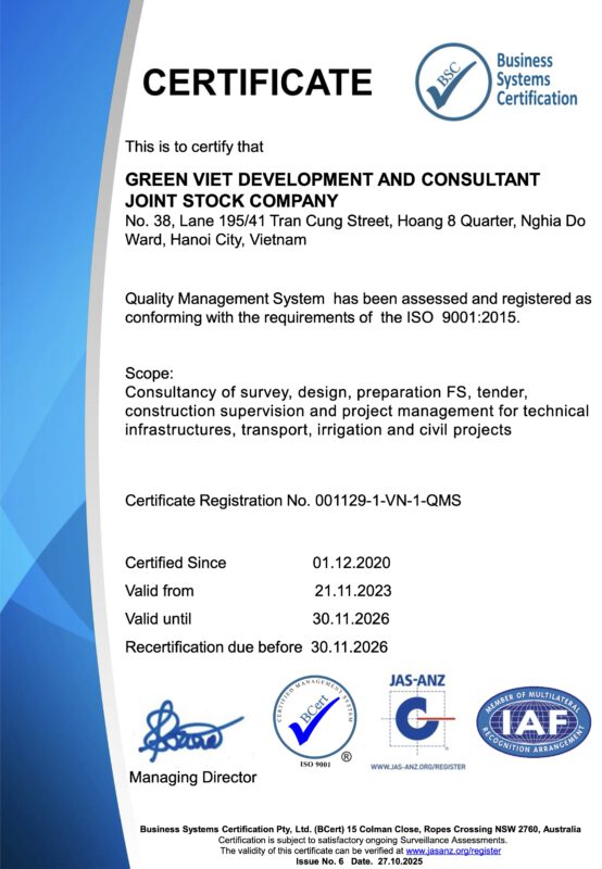 Green Viet Development & Consultant JSC has been recognized as one of the Top 5 Consultants from Vietnam involved in consulting services contracts under Asian Development Bank (ADB) loan, grant, and technical assistance projects, from 1 January 2019 to 31 December 2023.